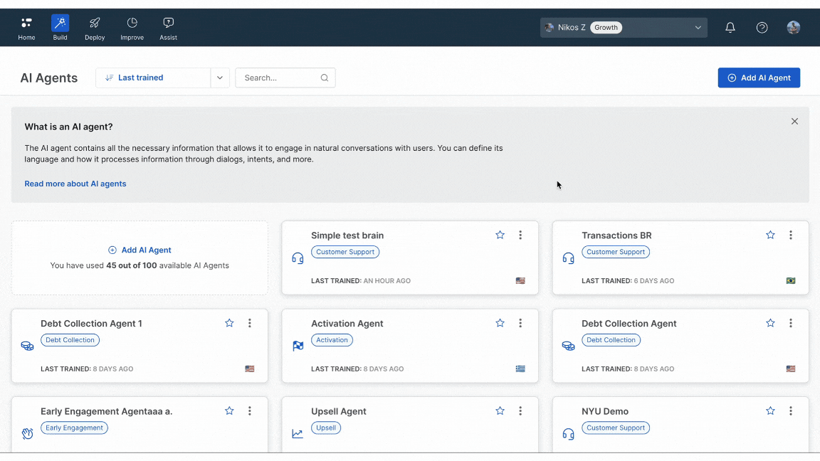 - Click + Add AI Agent.