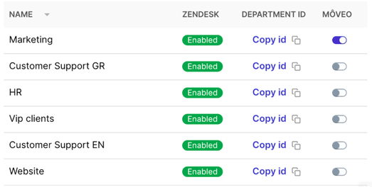 | Zendesk Departments | Dialog |