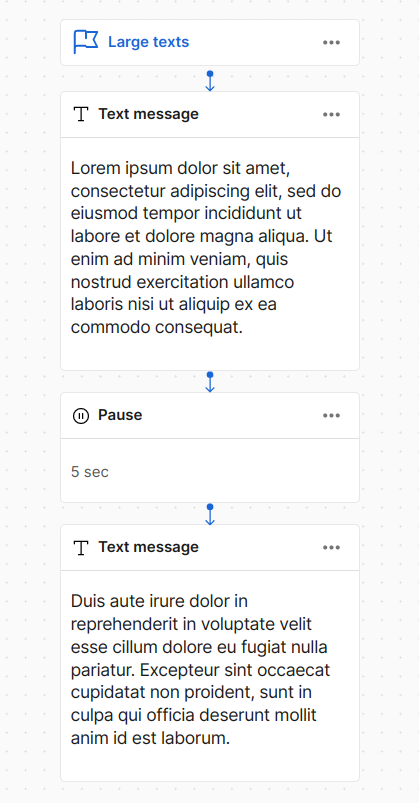 A good example of a pause implementation is shown below. The AI Agent sends two large texts to the user. Without the pause, the texts come one immediately after another, leaving no time for the user to read them and at the same time flooding their screen.