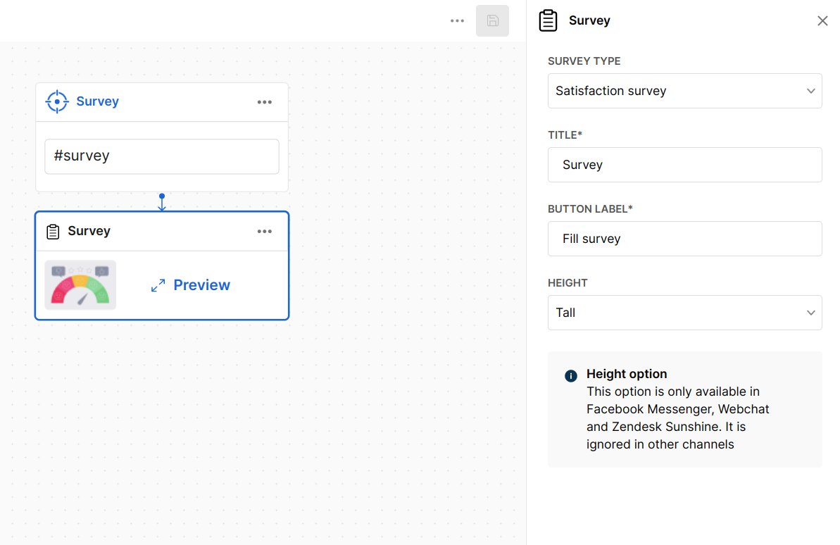 url: A valid and public URL to the survey webview. Its default value is the default satisfaction survey, hosted at https://webviews.moveo.ai/common/survey. -