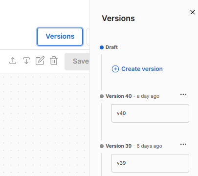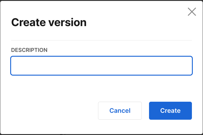 To create a new version, select Create version and write a short description of your changes. You can view the history of all your changes by clicking Versions.