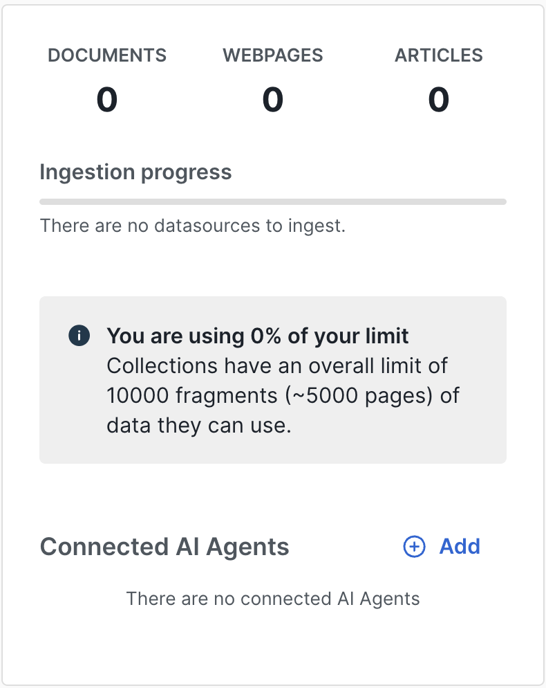 Collections are a powerful tool that allows you to curate and manage documents from multiple sources, such as web pages, file uploads, and knowledge bases. Their primary purpose is to enhance your AI Agent