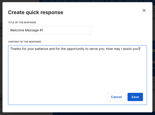 Quick responses let live agents reply to users quickly without having to type messages from scratch. They are useful when you frequently need to provide the same answer or handle common questions.
