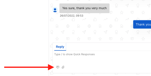 - Click on the Quick responses icon in the bottom-left corner of the chat box.
