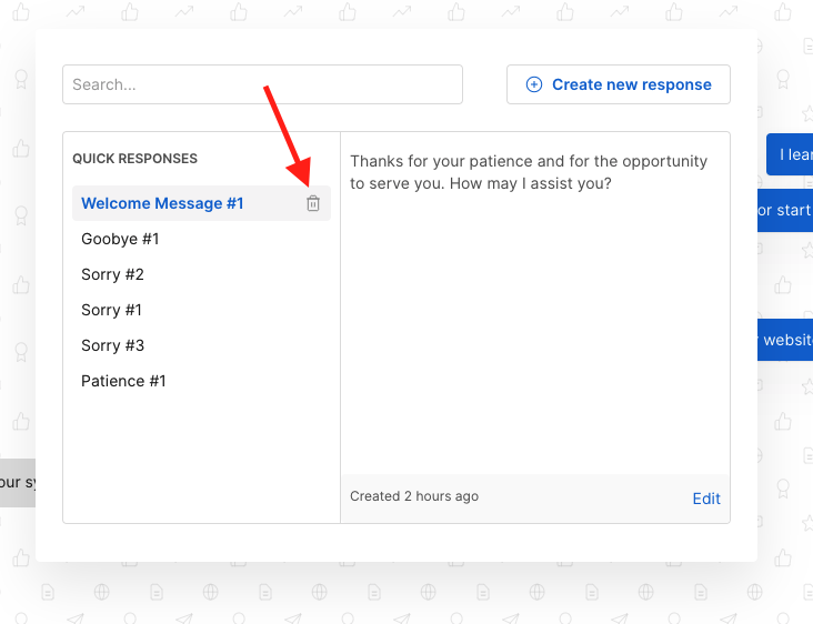 To remove a quick response, click the delete icon 🗑️ next to it.