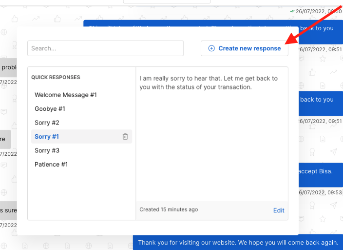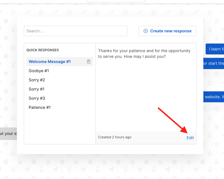 - Click Edit on the quick response you want to modify.